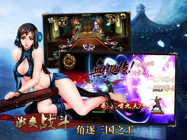 在游戏里,你需要单挑吕布、征服世界boss从而解救貂蝉,战胜曹操释放大小乔,无双绝技击杀对手后,不仅有后宫选妃共度春宵,还有美少女武将狂欢大派对夜夜笙歌。而打造一身极品装备,培养一群霸气武将,可以让你三国猎艳更加无敌哟。