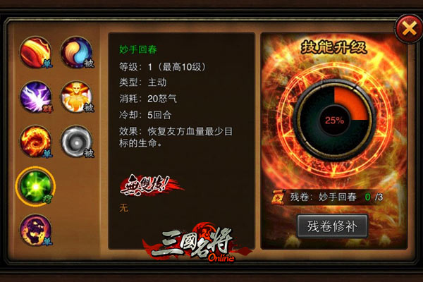 在《三国名将》三大职业里,军师是唯一兼有奶妈属性的角色,既是冲锋前线的战士,又是救死扶伤、运筹帷幄的智者。她擅长的是单体复活,“妙手回春”技能恢复友方血量最少目标生命。有玩家认为,在前期打怪升级过程中,边治疗边战斗,是不错的选择。