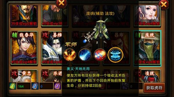 《三国名将》中庞统拥有四个技能,三个普通技能和一个奥义技能。