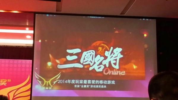 2014年9月28日下午,继天府奖“2014年度最佳移动游戏画面奖”之后,天拓游戏独代发行的精品手游《三国名将》再传喜讯,游戏击败众多竞争对手,从优秀的参赛产品中脱颖而出,荣获北京动漫游戏产业发展高峰论坛“金翼奖”手游类“2014年度玩家最喜爱的移动游戏”。