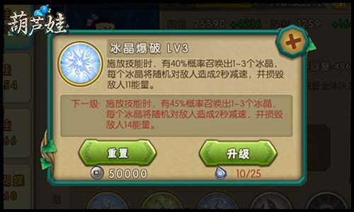 第一潜能“冰晶爆破”有强化五娃大招的作用,在释放大招的同时有一定几率召唤出冰晶对随机敌人造成减速效果,同时减少部分能量。这一潜能没有直接的伤害输出,但是有限制与削弱效果,作为辅助潜能来看“效果拔群”。