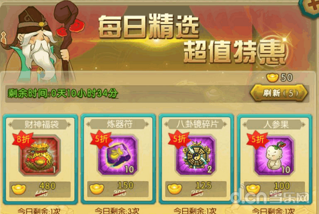 兑换完毕后,可以继续花费元宝来刷新商品,第一次10元宝,以后每次递增1元宝,刷新后可以继续兑换一次。