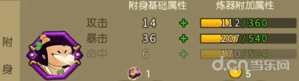 炼器符:法宝2星后娃娃附身可使用,随机增加1点法宝经验或者2-3点不等的附身加成属性(需激活法宝星级)。