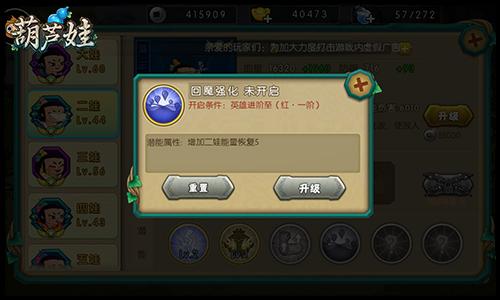 第三潜能“生命强化”可以使其变得更肉,而第四潜能“回魔强化”给予二娃每个小关卡过后的魔量回复,使得二娃能早些时间放出技能,也是间接地增加二娃的输出。