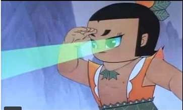 二娃千里眼放出的光照到蛇精,蛇精大叫不好。可见二娃眼睛里射出的光是客观存在的。