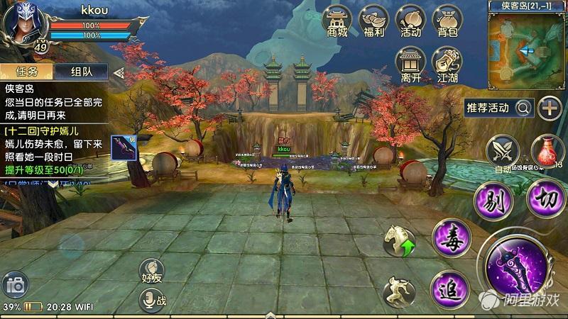 侠客岛30级之后开放,报名进入副本后,会随机给你分配到红色或者蓝色的阵营中。这时候你就可以开始你的杀戮表演了。