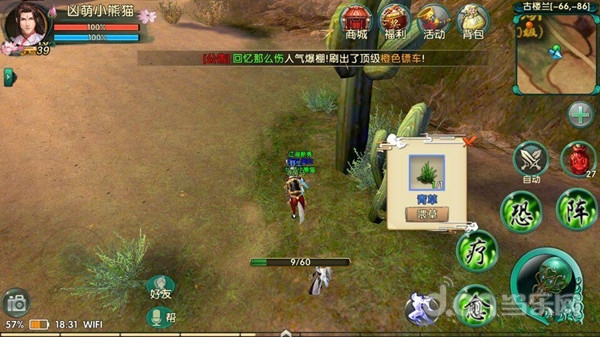 首先,本人是升到39级之后卡等级无聊去地图乱逛找所谓的“马和草”,说到这里想起了鸡和马。。听朋友说“古楼兰”地图有草,所以就在这个地图徘徊找啊找,卧虎贰的音乐和风景真是赶不上卧虎1啊~一点也没精神去坚持找我的马儿~这个时候在一个类似 人形的仙人掌旁边,“青草”两个字!激动的我来不及截图。。