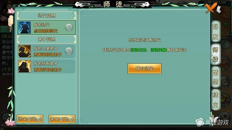 在游戏中,玩家达到20级可以进行拜师,达到40级拥有收徒能力。每一个师傅都可消耗自己的经验值为自己的徒弟进行传功,不仅徒弟升级的速度提升,自己还能获得行善值。