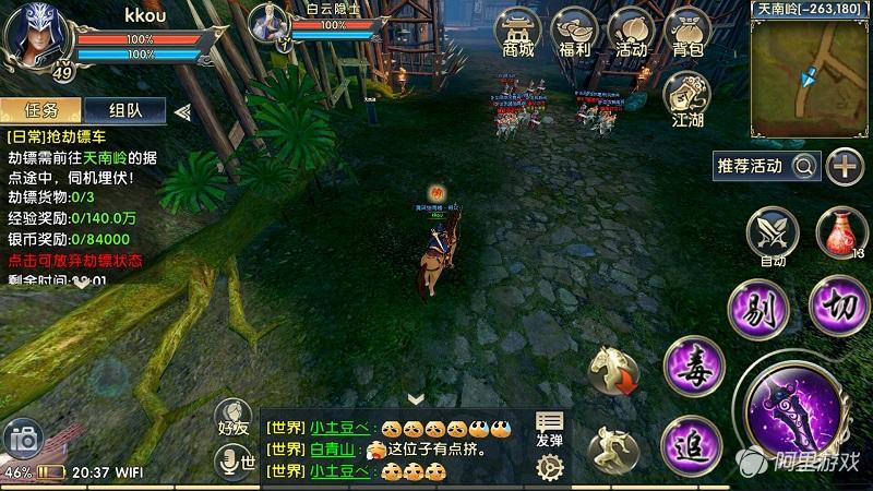 在运镖过程中,劫镖的恶匪会在据点内随时出没。这时候作为护镖的人,就到表演真正技术的时候了。在30分钟的时间内尽可能击杀多的劫镖人,杀的越多,行善值越丰厚。
