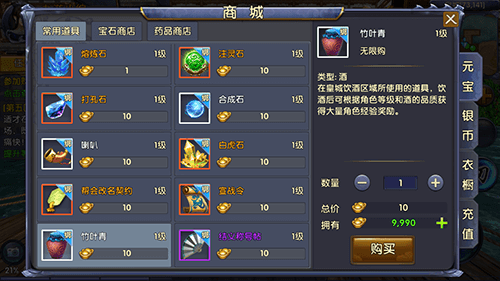 可以供选择的酒还是很多的,不过新手只能选择白色的竹叶青!