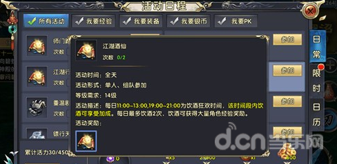 游戏中,很多活动和玩法都是有其加成时间的,比如饮酒、运镖等等,在加成时间内完成任务,会获得更多的经验,所以,大侠们一定要注意,尽可能的合理安排时间,以获取更大的收获。