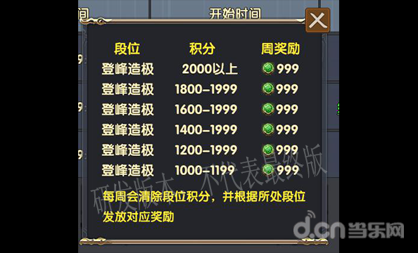 段位积分每周1凌晨6点清除,并通过邮件发放奖励给各位大侠。