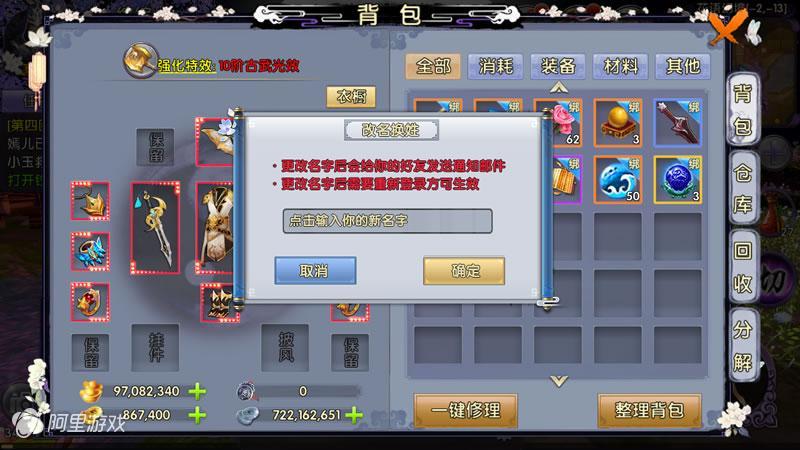 1、点击改名卡道具,点击【使用】按钮会弹出改名界面;