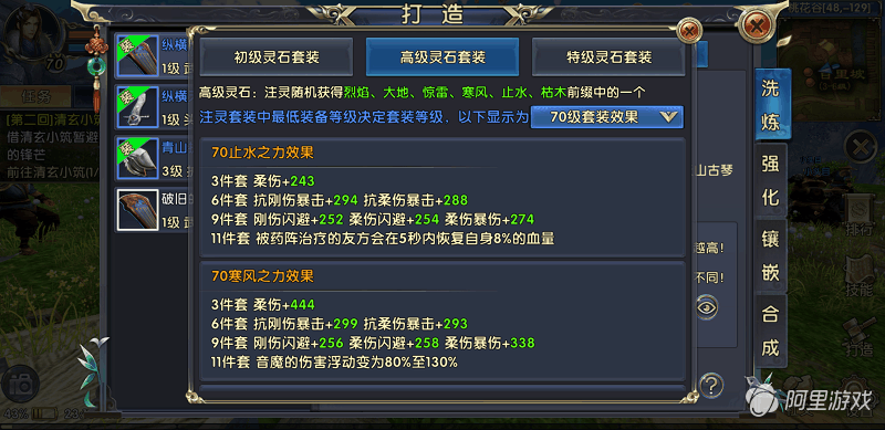 这里给大家推荐寒风之力套和青龙之力套。前者11套的效果为音魔的伤害浮动变为80%至130%,这个伤害加成是很明显的,极大提高了逍遥的输出能力。后者6件套的效果是血量高于80%的目标增加10%伤害,11件套时血量低于20%重置所有技能冷却时间。