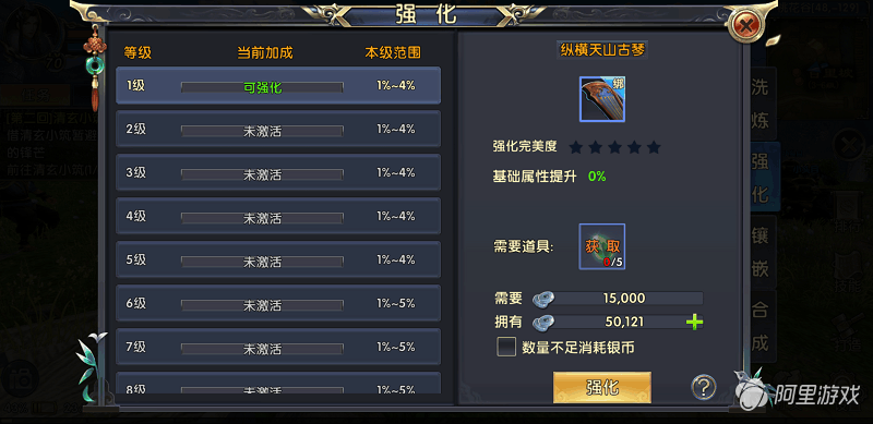游戏中设置的强化等级一共有15级,而每一级又有强化加成度。每成功强化一级会随机提升该等级的强化加成,最低1%最高5%,玩家可以对已激活的强化等级进行重铸达到最高加成效果。逍遥是一个远攻职业,必须保证伤害足够在敌人近身前就秒掉对手。所以这里建议玩家先强化武器,毕竟武器是伤害的主要来源,接着是首饰,最后才是防具。