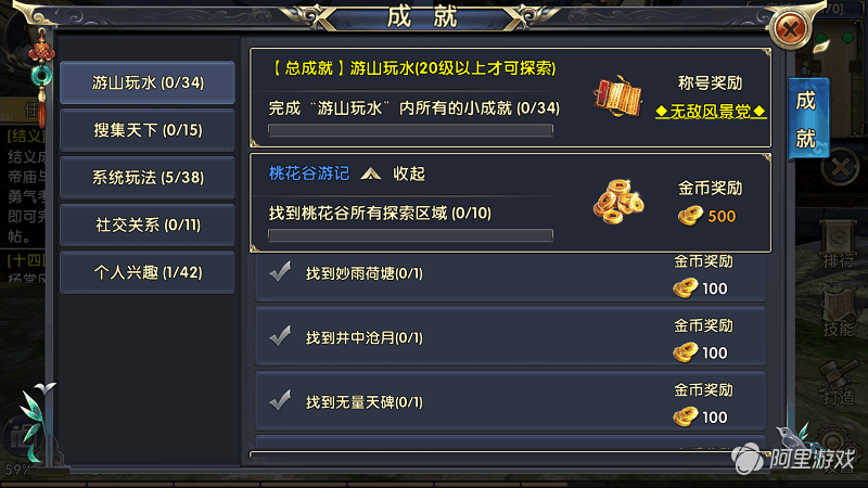 细心的大侠们可能早已经发现,在成就系统中,每完成一项成就,都可以获得金币的奖励,如果完成所有的成就,所获得的奖励,将会十分的丰富。成就完成不易,大侠们可以浏览官方论坛,上面有许多成就攻略,按照攻略,可以更为快捷的完成成就任务。成就任务的奖励视其难度会有不同,比较简单的成就会提供100-150金币的奖励,复杂一点的甚至可以获得500乃至更多的金币,可以说非常的丰厚。