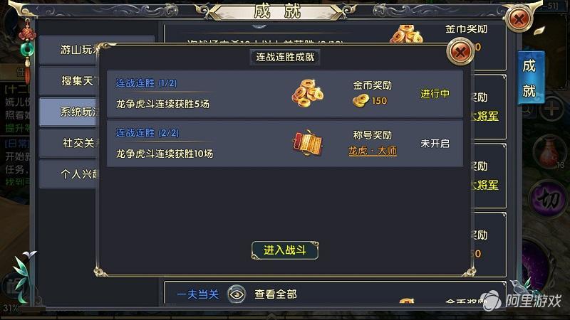 连战连胜成就分为两个本分需要:龙争虎斗连续获胜5场和龙争虎斗连续获胜10场.
