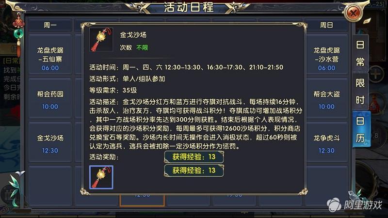 45级后开启一个新的活动——金戈战场,夺旗的活动就在这里面。金戈战场分为红蓝两个队伍,进行夺旗对抗,每场16分钟的时间,胜利的方式是通过夺旗、杀人等其他方式获取。