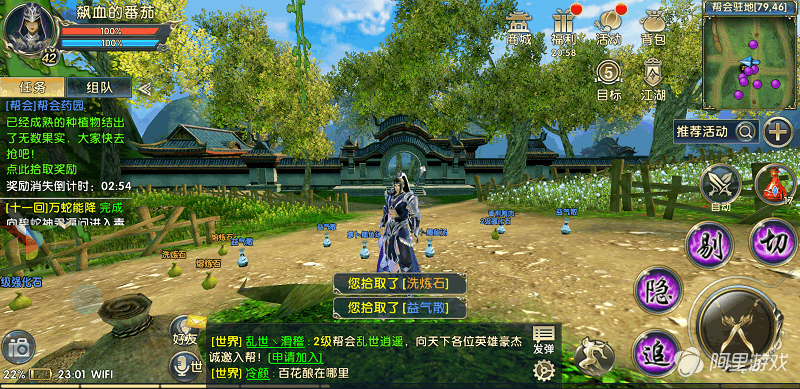 阿里游戏2017首款开放式奇遇武侠3DMMO大作《卧虎藏龙贰》手游,自由开放的江湖世界,惟妙惟肖的古风场景,精彩纷呈的多样玩法,将为你带来耳目一新的手游体验。帮会玩法是卧虎藏龙系列游戏中的经典玩法,《卧虎藏龙贰》手游也传承了这一特色。每位玩家在游戏中都需要加入一个帮会,因为帮会不但会有大量的活动,更有很多吸引人的福利。这些对于小伙伴们在游戏中的成长至关重要,下面就为大家来介绍一下帮会活动中的帮会药园玩法。