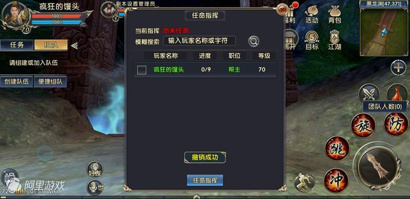进入副本后,需要帮主或副帮主进行指挥的任命。只有任命指挥后才可以设定或更改副本难度,不同难度的副本要求团队平均等级、最小在线人数、最大团队总人数均不相同。所以在开启副本前一定要仔细考虑当前帮会人数在设置难度,随意调整难度会导致怪物重新刷新。