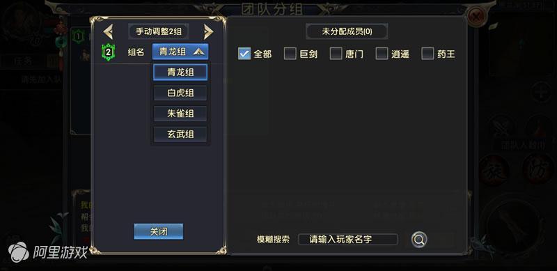 开启关卡前会有一个人员分配的阶段,这是十分重要的一点,如何分配好成员将决定你能否通关。队伍一共可以分为四组,分别是青龙组、白虎组、朱雀组、玄武组,每个队伍的人数可以随调配。这里推荐的人员分配比例为两个巨剑、两个药王、一唐门一逍遥。由于开局有小怪需要巨剑当坦克,怪物伤害高药辅助专门奶巨剑,逍遥AOE技能多清小怪效率高,唐门则在打首领是爆发高。