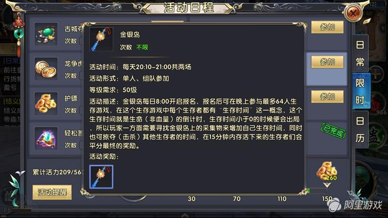 这里给大侠们一个小小的建议:因为金银岛的人数上限是64人,所以想要参加活动的大侠们,务必要提前报名,以免错失良机。
