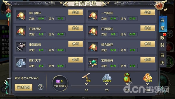 帮派跑环全天任意时间都可参加,任务一共十环,都是非常简单的任务,涉及到战斗的任务,也都是与击杀与玩家等级相应的怪物,不存在任务失败的可能。