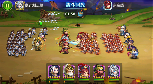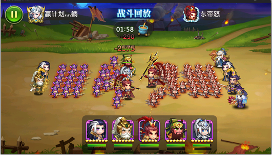这个阵容的关键在于兵种选择,一定要记住,这个游戏,英雄才是主角,小兵只起到辅助作用,由于我们的三英雄前排,小兵不需要作为前排,更应该作为输出去补足伤害,由此兵种应当选择弓兵或枪兵。有很多玩家,担心小兵冲前会被敌方武将当做充电宝宝,因此更喜欢选择弓兵。我最初也是认为四个兵种里面,最应该培养的就是弓兵。但是,一场战斗改变了我们的看法。我们来详细分析一下,下面这场对战。