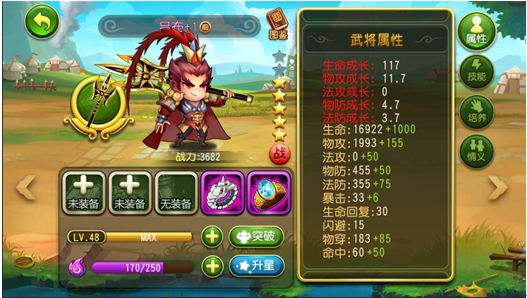 这是我主要培养的武将,物防才500,降低149.8 就相当于降低了接近三分之一。