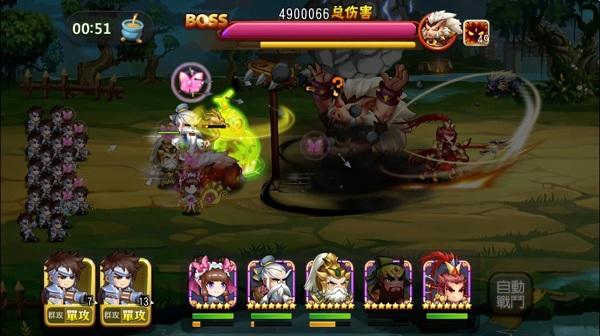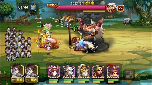 大家注意一个细节,前排放置吕布在上方,boss优先攻击的是吕布,当吕布血量较少时,可以释放大招时苟存一会,用关羽爸爸抗伤害,等华佗爸爸奶。