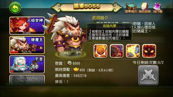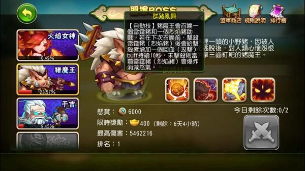 猪魔王是物理阵容最好欺负的boss了,打猪魔王注意留大招就好,一定不能心急,不要贪输出,留技能打断boss大招才是关键。