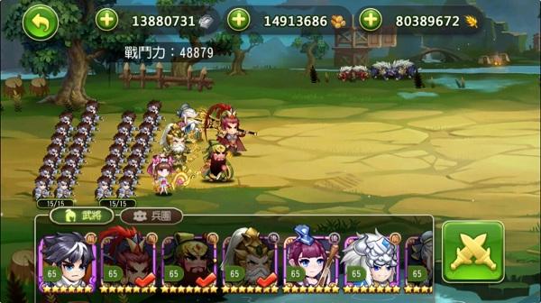 无双兵团是一款三国题材,收集名将统领兵团畅快战斗冒险的快节奏RPG卡牌游戏。三国名将统兵对战策略玩法,兵团配合比名将单挑更重要!三国乱世出英雄,人们从来只关注名将的威武霸气忽略无名小卒默默无闻的付出,其实排兵布阵好,也可以发挥意想不到的巨大作用,小兵不再是炮灰,带得出去带得回![详情]