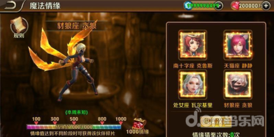4.魔法情缘:这是个有趣的玩法,可以通过跟特定的星灵猜拳获得这个星灵的碎片,就是剪刀石头布啦!里面的橙色星灵金色星灵很多,只要猜拳醒了星灵就可以获得情缘值,分为5个档次:100情缘(获得5碎片)、300情缘(获得5碎片),500情缘(获得10碎片)、800情缘(获得10碎片),1000情缘(获得15碎片)。