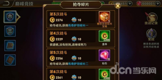 6.巅峰竞技:通过抢夺战斗,可以刷出各种星灵碎片,比如紫色的星灵碎片、橙色的伙伴碎片宝盒、橙色碎片等。