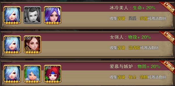 冰冷美人:收集洛璃、灵溪、苏宣可激活生命+20%