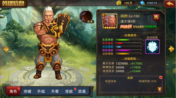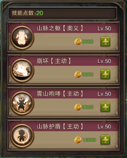 山脉之躯(奥义):自身巨化,同时提升防御力n点免疫控制类技能