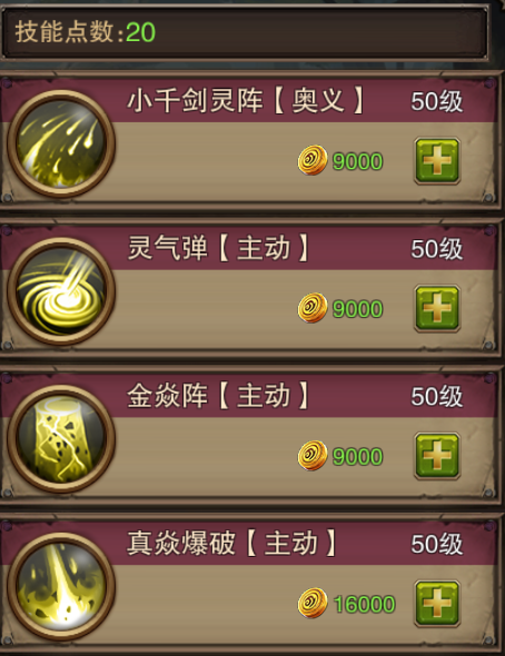 金焱爆阵:在敌人脚下丢下4颗灵气炸弹,一旦触碰则全部引爆,造成n点法术伤害