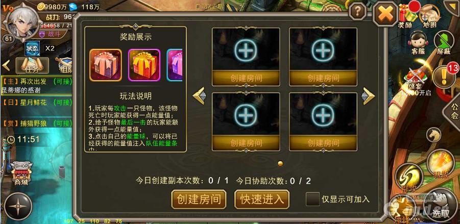 玩家到达一定等级之后可以组队进行副本冒险,获得武器升级材料,宠物礼物等珍稀道具。