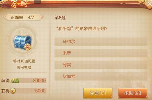 如果遇到自己拿不准的题目,可以选择“免答”来直接跳过,但每天只有一次机会;如果是已经加入了帮会的小伙伴,可以选择求助,系统会自动把问题发送到帮会频道,让群众的智慧帮你度过难关!需要注意的是每天只有3次机会。