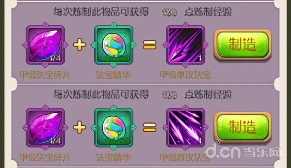 西游记口袋版中玩家只要收集一定数量的法宝碎片,就可以在法宝炼制界面制造法宝。