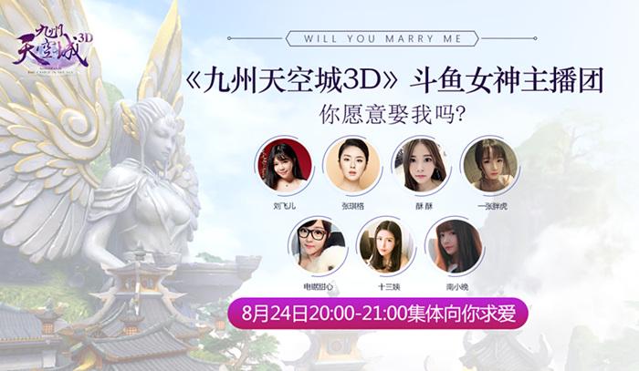 由刘飞儿、张琪格、酥酥、一只胖虎、十三姨、云中欧凰、电锯甜心、南小晚、主播AJ、老朱等十位斗鱼人气主播组成的应援团,将在明晚(8月24日)20:00-21:00在游戏中与你相遇。也许是在雾气氤氲的温泉中,也是在花前月下的仙缘洞天,人气主播们将在这里寻觅有缘人,期待与你展开一段令人心动的九州之旅。