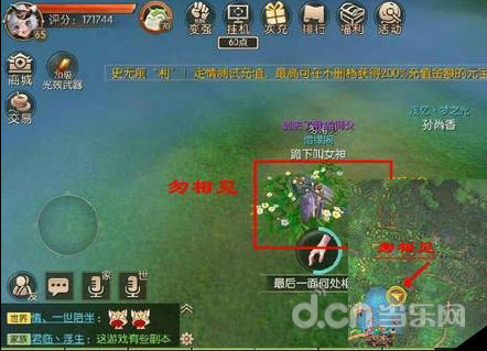 2、三朵花全部采集完后就可以触发奇遇了,直接飞到NPC莲见处,坐标(-44,-4)
