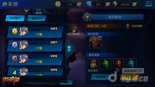 如果在爬塔过程中遇到困难也请不要灰心,在通天塔挑战没有次数限制也没有体力消耗,你只需要调整战斗方案再战即可!此外,对于容易卡关的冒险者们,小编在这里大发慈的告诉你们一个秘诀→点击通天塔页面的左侧奖杯图案,可以查看到当前好友的爬塔进度,向领先你的好友请教爬塔技巧吧~如果你还嫌不够,还可以查看【单区排行】,里面是整个区的爬塔大神,从此可以开心的抱大腿啦~