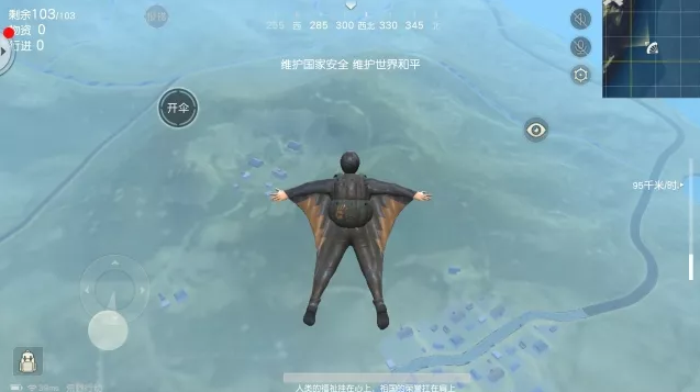 提前开伞降落是所有跳伞技巧中速度最慢的一种,如果你提前开伞的时机过早时,你会发现你还没安全落地的时候已经有玩家被淘汰出局。当然,这种跳伞技巧也有它的好处,那就是你能去到离航线非常远的资源区。一般这种跳伞方式很少有人选择,所以资源搜索期间基本不会有其他人。