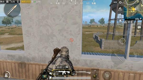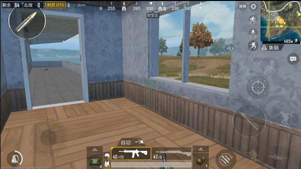 借助大窗口和优势,可以轻松获取建筑外部的大范围视野,观察外部情况时注意自身蹲卡位置,尽量借助第三人称视角的优势,隐蔽自身(如下)。