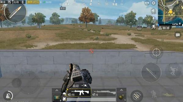 在复杂楼的正北和正南边都有一个阳台。卡点在该位置可以直观的获取外部区域所有视野。但需要注意,因为墙体较低的缘故,需要趴下才能隐蔽自身(如下)。