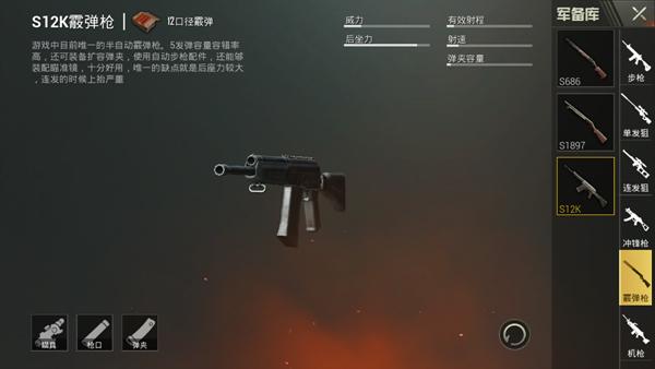 S12K虽然准度较低,但是它具有五发弹容量,最有趣的是,这把枪可以配搭瞄准镜,枪口和弹夹,满配后稳定性很好,加上倍镜的后精准度也大大提高了,贴脸战两发子弹就可以轻松击杀敌人。