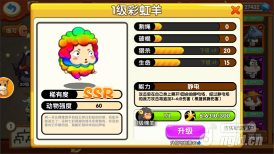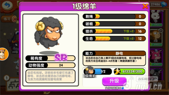 其次是SR级动物绵羊——攻击后会在自己身上展开1回合的静电场,经过静电场的我方攻击将追加2-4点伤害。通过能力介绍,绵羊属于半攻击半辅助动物,既可以猎杀对手动物,也可以在下回合增加己方动物的攻击伤害,配合猎杀型动物小象和加伤害型动物山羊,可以一波将对手动物打残,可以说是个非常实用的动物。