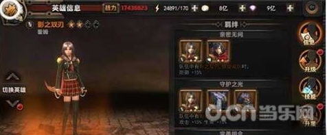 完美组合:队伍中有影之双刃,朱雀路希,皇国准将时,攻击+20%,防御+20%。