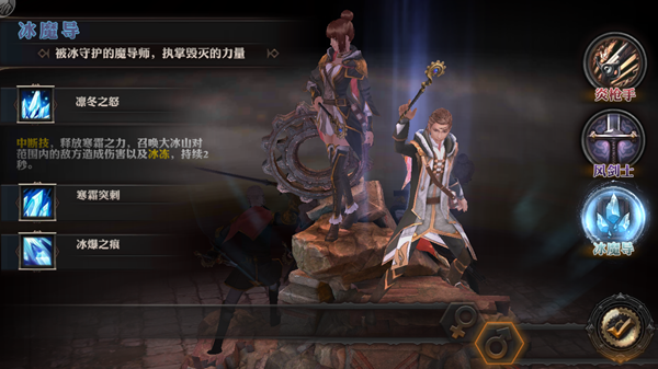 冰魔导技能炫酷,有控有输出。寒霜突刺的扇形范围内定身作为控制技能效果拔群,但需要一定的释放技巧。凛冬之怒技能可以大范围的造成持续杀伤,冰魔 导既可以为队友提供更好的输出环境,同时自身也有不俗的伤害,但需要知道在引导凛冬之怒技能的时候冰魔导会站定吟唱,注意躲避不要吃到太多伤害。选择冰魔导,让冰雪在你手中绽放。